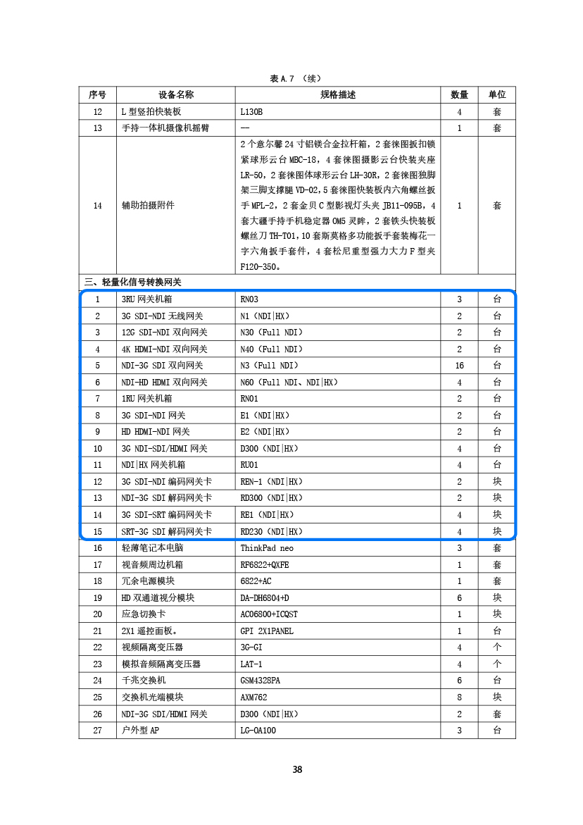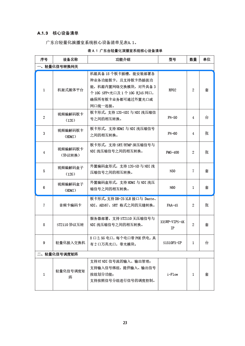 *广东台轻量化演播室系统部分设备清单