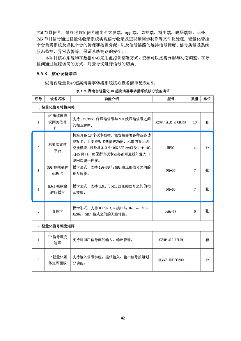 *湖南台轻量化4K超高清赛事转播系统部分设备清单