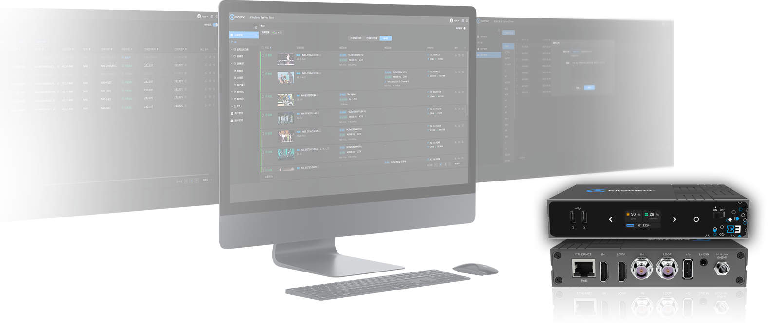 E3可无缝接入KiloLink Server Pro平台,可实现设备的远程配置、状态监控与集中管理。无论是设备在线状态、视频画面预览、带宽占用还是IP分配,都可在平台上统一查看与调度。