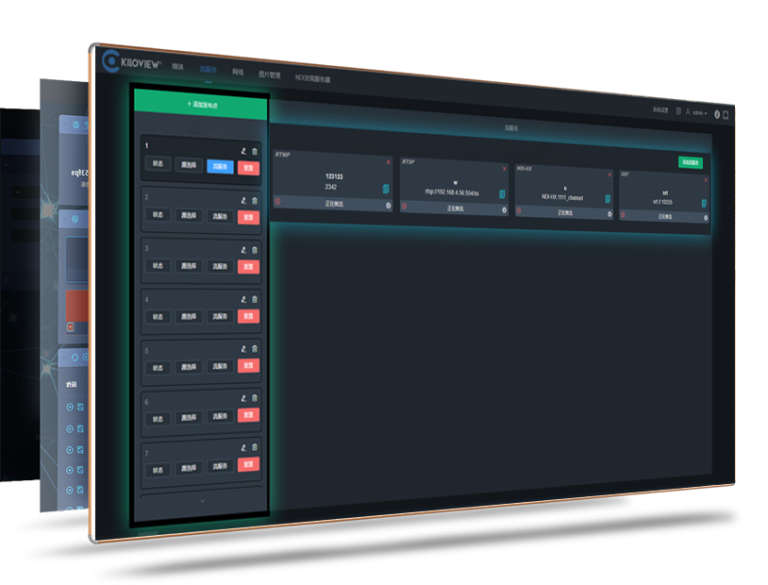 流媒体分发能力支持9分布点*4路流服务=36路SRT/RTMP推流同时,还支持50路NDI|HX/RTSP协议并发