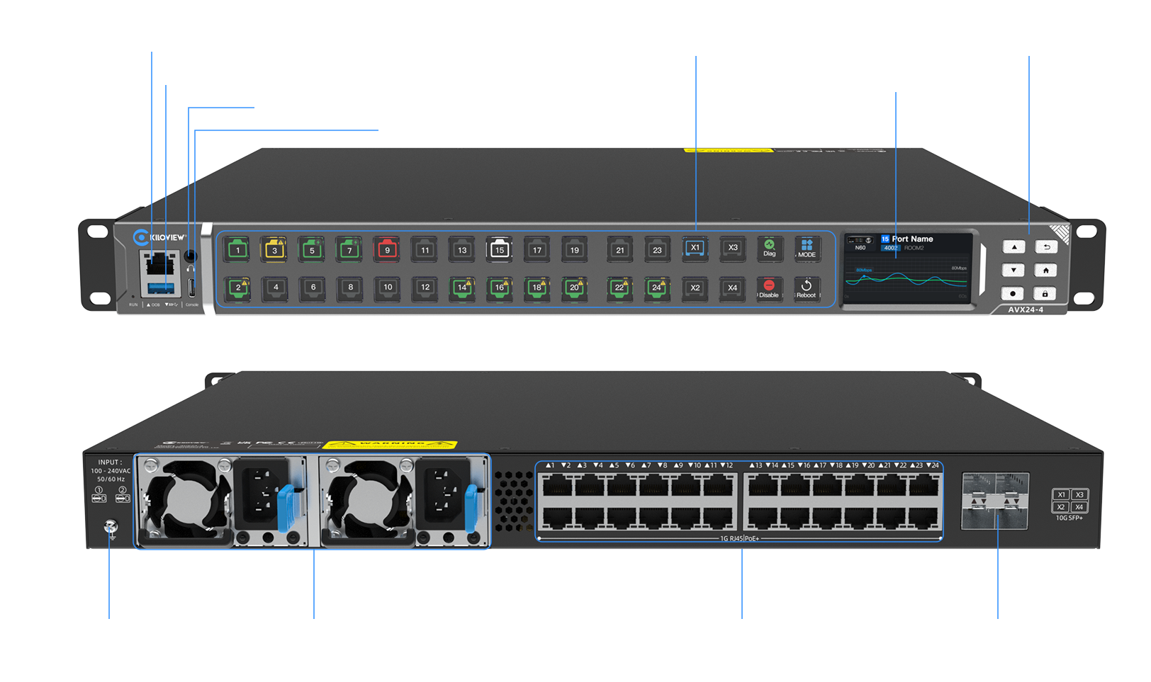 AVX Media HUB支持多设备集群化部署,可弹性扩展网络规模与端口密度,同步提升系统总带宽与业务冗余能力,为关键音视频业务的持续与扩展提供坚实支撑。通过与 Kilolink Server 的深度协同,用户可在大规模分布式部署场景下对多台 AVX Media HUB设备以及其接入的终端设备进行集中管控,通过统一的管理界面,用户可实时监控全网设备运行状态,并远程执行设备重启、名称修改、参数配置等操作,AVX Meida HUB同时具备跨交换机管理能力,适配复杂网络架构及大规模组网需求,构建真正互联互通、可扩展的音视频传输与管理系统。
