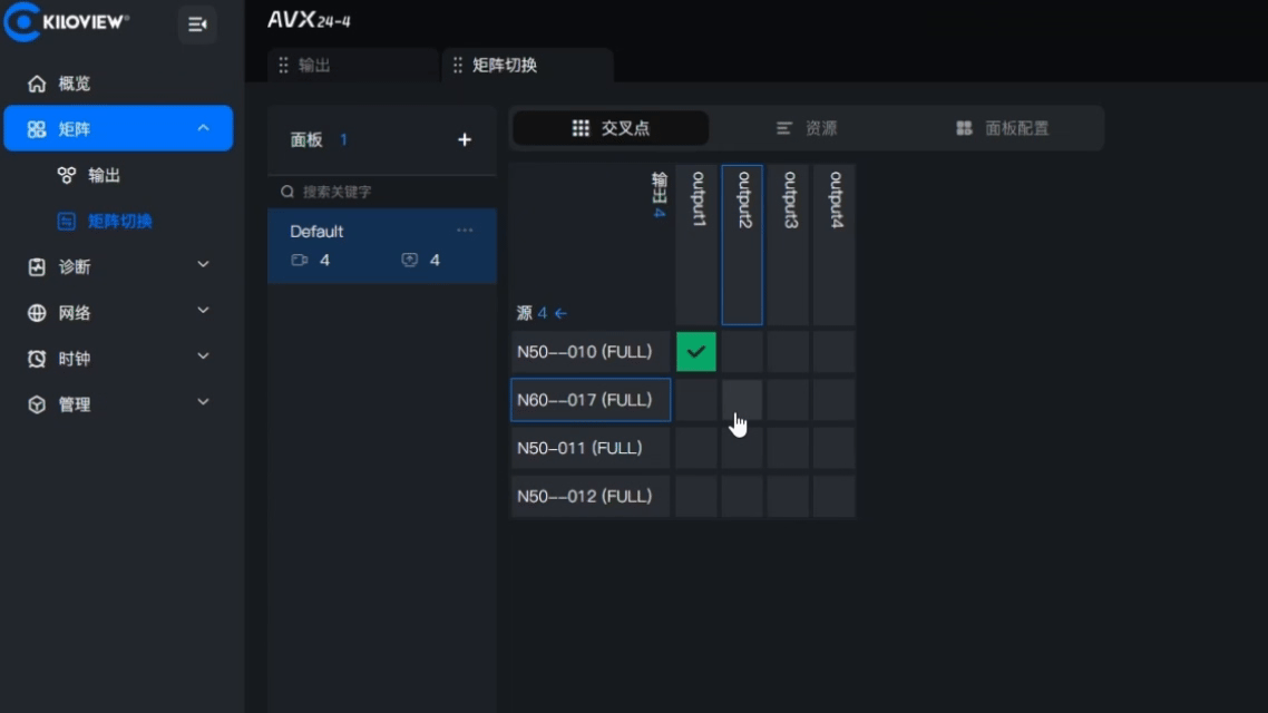 通过直观的点击、拖拽等交互方式,用户可轻松完成网络状态实时监控、隔离组网配置以及矩阵信号切换。同时支持远程执行设备重启、名称变更、参数配置、按键图标自定义等操作,将专业级的网络管控转化为简洁高效的可视化操作体验。