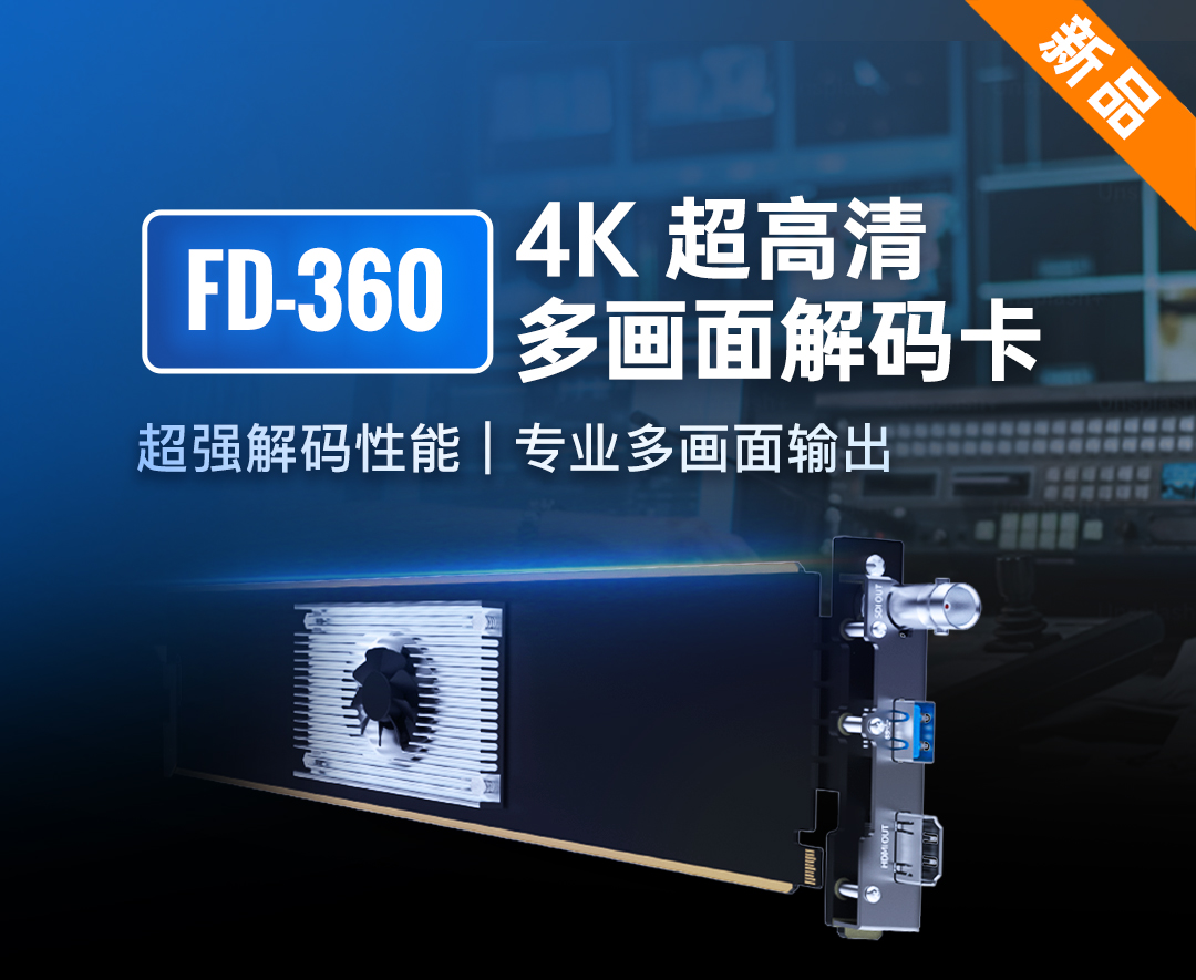 FD-360 解码卡是一款集解码、预览、处理与输出功能于一体的全能型视频处理功能卡。它支持多种网络视频流格式,包括NDIHighBandwidth/NDI HX2NDI HX3/SRT/RTMPRTSP/HL S/UDP/RTP,并通过3G.SDI和HDMI接口实现音视频同步输出.FD-360可同时解码多达12路1080p60视频流,支持多画面任意拼接显示并能实时预览、切换和输出。