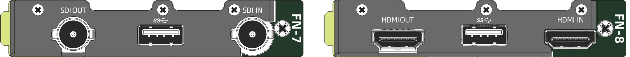 FN-7: 配备2个3G-SDI接口,既支持SDI信号的输入与环出,也能将IP流解码为SDI信号输出。