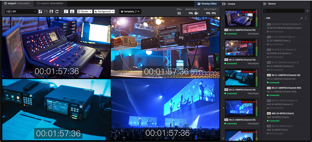 支持 3G-SDI + HDMI 同步输出,可同时解码4路1080p60 视频流,兼容 H.265/H.264/NDI High Bandwidth 等主流编码格式。